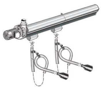 Рельсовая система длиной 20 м с 2-мя каретками, с 2-мя шлангами термостойкости до +200 С и диаметром 100 мм, с вентилятором и 2-мя резиновыми газоприемными насадками