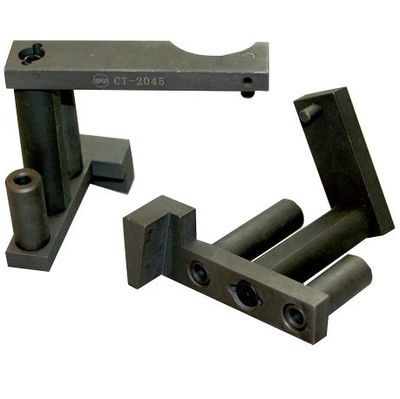 Комплект приспособлений для фиксации колес датчиков системы VANOS двигателей BMW M62. Комплект состоит из двух инструментов для левой и правой половинки двигателя V-образного восьмицилиндрового двигателя. Оригинальный номер приспособления BMW 116 450.