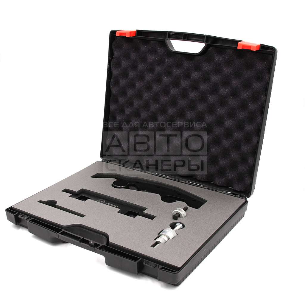 Набор специальных инструментов предназначен для установки и регулировки фаз ГРМ, как классических шести цилиндровых двигателей без системы VANOS, так и двигателей с двойной системой VANOS. Данный тип двигателя представляет собой модификации BMW M42, M44, M50, M52, M52TU, M54, M56, MS50US, S52US.