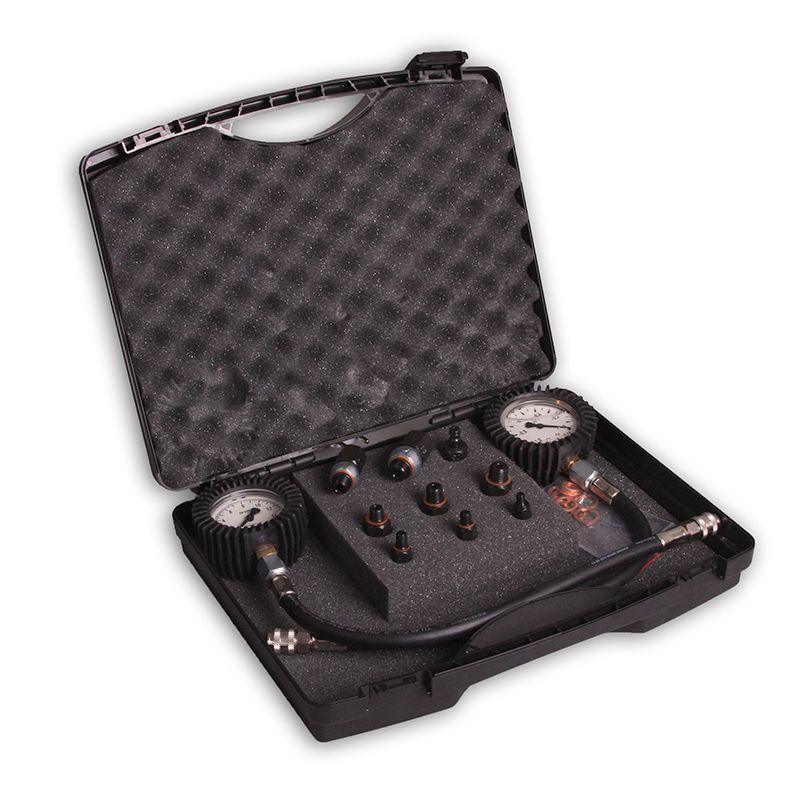 Набор предназначен для измерения внутри корпусного давления, а также для измерения разряжения в обратной магистрали топливного насоса высокого давления: VE, DPC, DPA. В набор входят необходимые переходники для данного типа ТНВД, а также манометр (0-16 Бар) и вакуумметр (0-1 Бар).