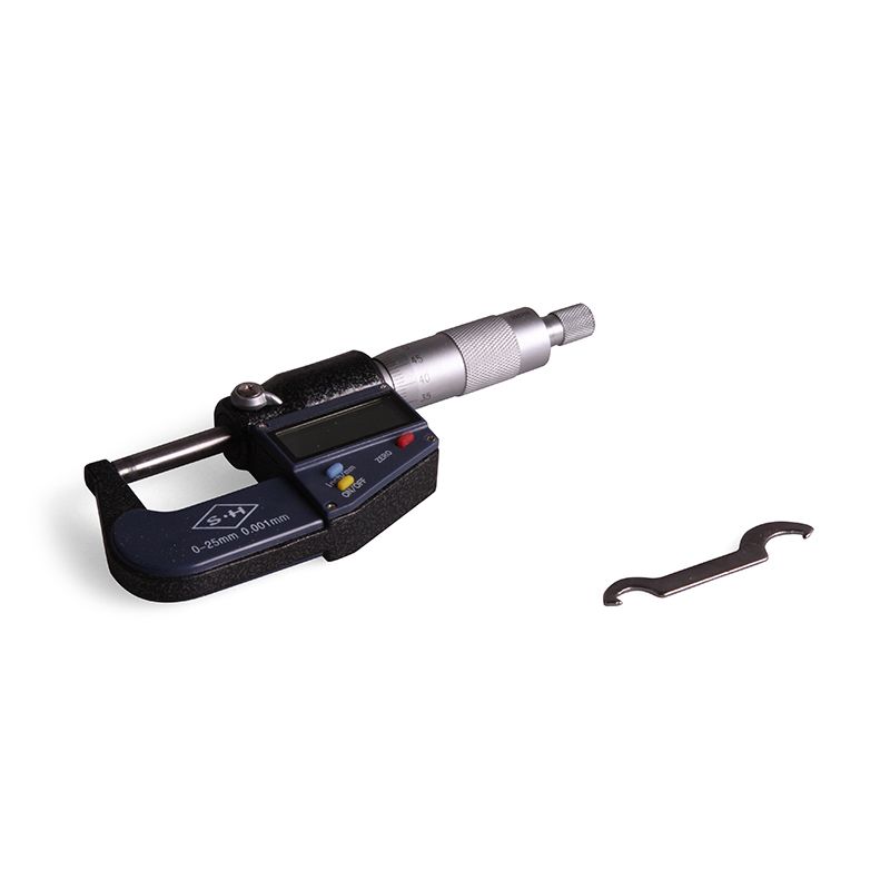 Цифровой микрометр с точностью 0,001 мм - Назначение цифрового микрометра: определение внешних линейных размеров, например, регулировочных шайб дизельных форсунок. - Точность измерений: 0,001 мм - Диапазон измерений: от 0 до 25 мм
