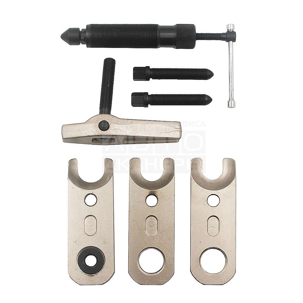 • В набор гидравлического съемника шаровых опор  входят 3-и типа размера сменных лап с шириной зева соответсвенно: 30, 34 и 40 мм, изготовленных из хромированной стали SCM 440.