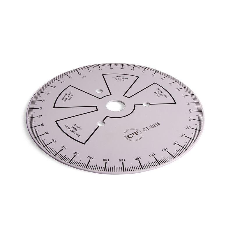 Градуированный диск для установки ГРМ - Назначение универсального инструмента для автосервиса: настройка фаз газораспределения двигателя. - Параметры градуированного диска для ГРМ: диаметр 320 мм. - Разметка: 360°. - Особенность инструмента для установки ГРМ: разметка положения клапанного механизма. - Материал изготовления: сталь. - Внешний диаметр диска – 230 мм. - Диаметр осевого отверстия – 25 мм. - Диаметр отверстия для болтов крепления - 10 мм.