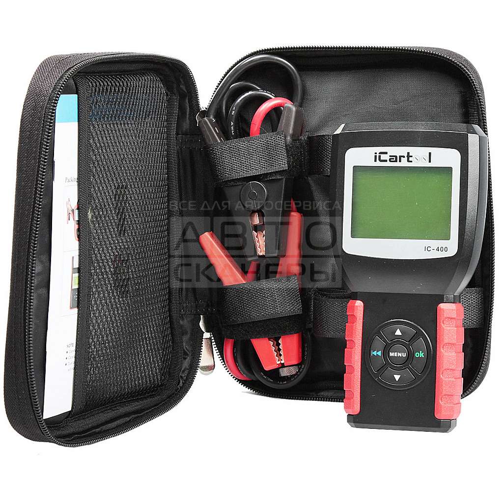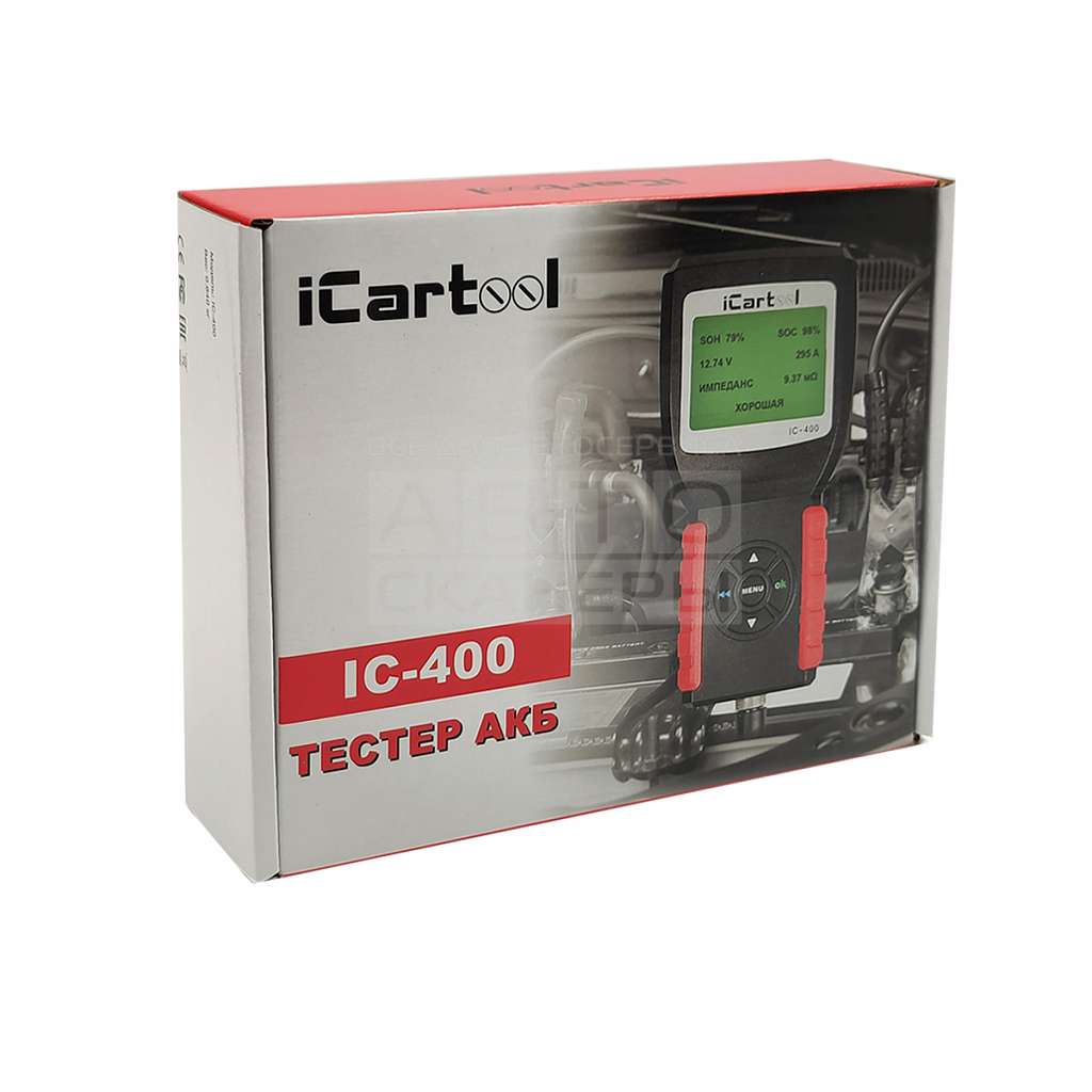 iCarTool IC-400 Тестер акrумуляторных батарей автомобилей. Тестер АКБ оснащается большим цифровым дисплеем и корпусом с удобным захватом. Тестирование уровня заряда свинцово-кислотных аккумуляторов как с сепараторами из стеклоткани (тип АКБ AGM), так и из геля (тип АКБ GEL). Рабочее напряжение АКБ 12, 24 В.