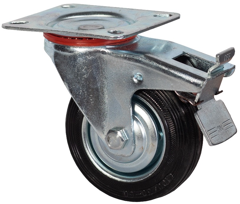 Колесо поворотное с тормозом используется в более агрессивных средах, чем стандартные аналоги. Оно выдерживает достаточно высокие температуры и способно нести значительную нагрузку. Кроме того, наличие фиксаторов обеспечивает надежную установку транспортировочного устройства на одном месте без движений.
