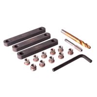 Набор для починки резьбы при ремонте тормозного суппорта применяется для легковых автомобилей, легких коммерческих автомобилей. Последовательность работ: после нарезки необходимой резьбы большего диаметра устанавливают втулки с медными шайбами, входящие в комплект, в поврежденные места креплений. Комплектация - Метчик - 1 шт - Шаблоны - 3 шт - Ключ - 1 шт - Сверло - 1 шт - Втулки - 10 шт