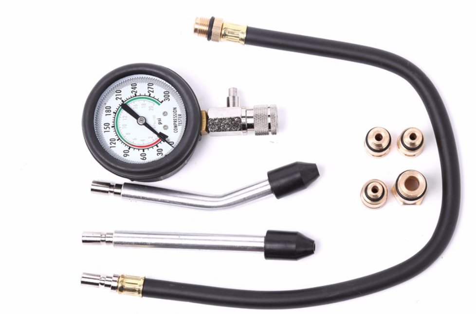 Применяется для измерения компрессии в цилиндрах бензиновых двигателей легковых автомобилей и мотоциклов. Позволяет косвенно оценить состояние ЦПГ, прокладки ГБЦ, впускных и выпускных клапанов. Особенности: Возможность применения в двигателях легковых автомобилей и мотоциклов благодаря наличию четырёх резьбовых адаптеров и двух конусных адаптеров. Резиновая защита манометра для исключения его повреждения. Кнопка сброса давления на манометре. Быстросъём на манометре. Диапазон измеряемой компрессии: 0-21 бар (300 psi) Резьбовые адаптеры для свечей 14 и 18 мм Устройство с клапаном фиксации измеряемой компрессии и кнопкой сброса Гибкий резиновый шланг 460 мм Жесткая прямая насадка 186 мм с резиновым коническим наконечником Жесткая изогнутая насадка 186 мм с резиновым коническим наконечником Адаптеры с клапаном: 5/16' – М10х1.0 5/16' – М12х1.25 5/16' – М14х1.25 5/16' – М18х1.5 Адаптер для быстрой смены насадок