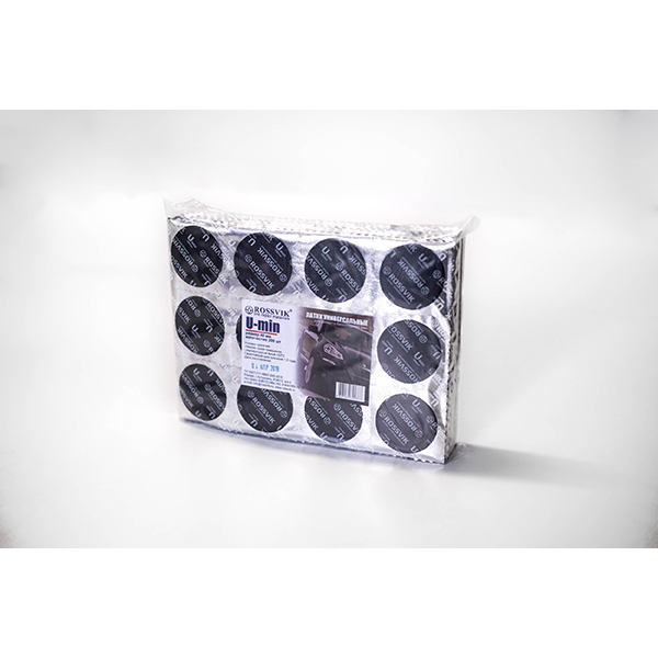Латки универ. U min (40), 200 шт. пакет Универсальные латки Rossvik применяются для ремонта любых шин радиального и диагонального типа. Вы можете отремонтировать повреждение в любом месте протектора или боковой порез на покрышке легкового автомобиля, сельскохозяйственной техники, грузового пассажирского транспорта. Универсальные латки изготавливаются из более прочной и толстой резины, поэтому их можно использовать для ремонта шин с рабочим давлением вплоть до 6 кг/см Специальный состав и конструкция позволяют латкам Rossvik сохранять эластичность и выдерживать высокие температуры. Универсальные латки отлично подходят для ремонта “холодным” и горячим способом.