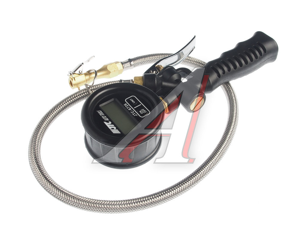 Манометр с рукоятью и ручным клапаном. Выполняет три функции: проверка давления, сбрасывает давление до нужного значения, накачивает до нужного значения. Цифровой манометр 60 мм. Подсветка дисплея включается во время использования и выключается после 12 секунд простоя. Длина трубки: 600 мм. Единицы измерения: psi, Ьаг, kgf/cm², kPa. В111. Вес: 550 грамм. Рабочее давление: 3-150psi. Точность: 30-50psi ±1 psi; 3-29/51-11 Opsi: ±1.5psi; 110-150psi: ±2psi. (при температуре 20-30°С)