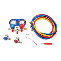 CT-M1000 Манометрический коллектор комплектуется шлангами и предназначен для заправки, диагностики систем кондиционирования воздуха хладагентом R134. Данный коллектор применяется для обслуживания автомобильных кондиционеров: легкового, грузовго, коммерческого транспорта, спецтехники и т.п. Комплектация набора инструментов для кондиционеров - 2-х вентильный манометрический коллектор для R314 - Заправочные шланги (синий, красный, желтый) длиной 1,5 м - Быстросъемные соединения для низкого и высокого давления - Дополнительное оборудование (приобретается отдельно): электронные весы, цилиндр для масла, электронный течеискатель