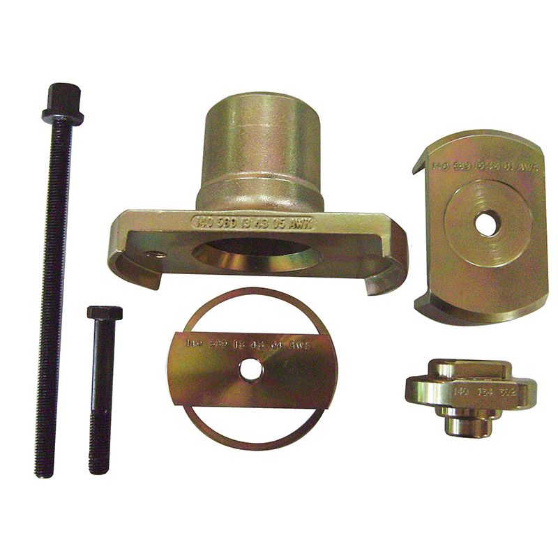 Комплект монтажных приспособлений для АКПП С помощью монтажного приспособления осуществляется ремонт планетарных механизмов АКПП 6 и 9 серий. Если быть более точным, планетарный механизм состоит из планетарных рядов. Управление этих рядов осуществляется с помощью фрикционных элементов. Назначение монтажного приспособления для АКПП Данное приспособление используется для установки фрикционных элементов муфты блокировки K1/K2 и дискового тормоза B1/B2, в частности для монтажа стопорного кольца. - Применяемость монтажного приспособления: 722.6 и 722.9 серии - Оригинальный номер монтажного приспособления: 140 589 13 43 00