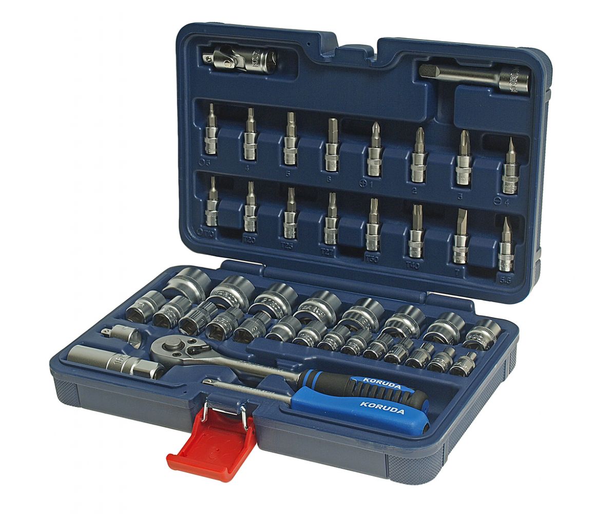 НАБОР ГОЛОВОК ТОРЦЕВЫХ 1/4'',3/8" 6-ТИ ГРАННЫХ В КЕЙСЕ 45 ПРЕДМЕТОВ KORUDA