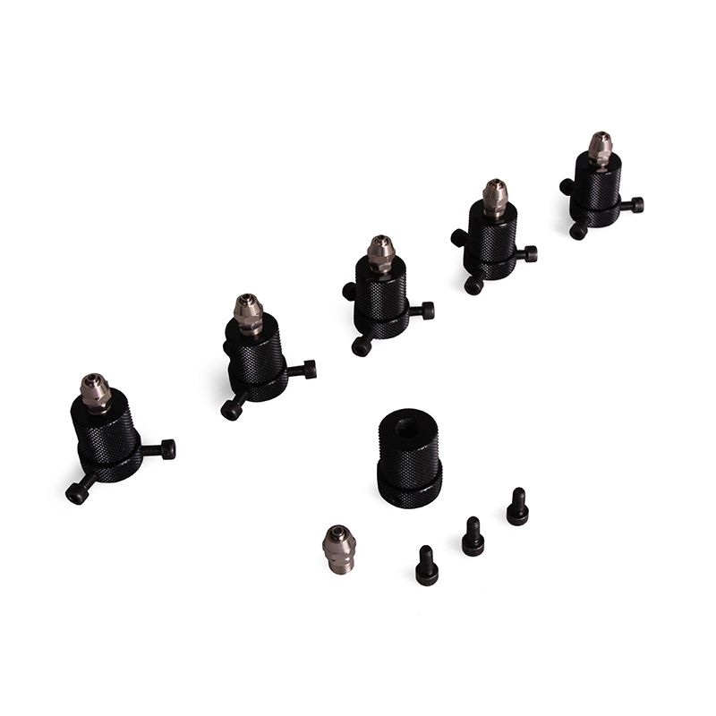 Набор адаптеров для распылителя форсунок - Назначение инструмента для дизельных форсунок: набор адаптеров предназначен для подключения дизельных форсунок во время испытания на стендовом оборудовании. Одна часть служит для подключения к распылителю форсунки, другая часть помещается в мерительную колбу стендового оборудования для дизельных форсунок. - Параметры адапетров и комплектация: комплект их шести переходников для испытания дизельных форсунок с диаметром расплытителя 7 мм.