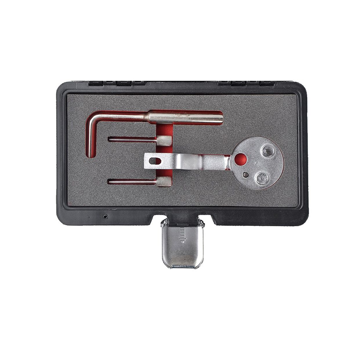 Набор инструментов для ГРМ Ford Transit 2.2 TDCi. Подходит для Ford Transit 2.2 до 2006 года выпуска для блокировки коленчатого вала и маховика. Позволяет установить положение датчика ВМТ после работы с системой цепного привода. Инструмент для блокировки коленчатого вала аналогичен OEM 303-1587. Инструмент блокировки маховика аналогичен OEM 21-251 / 303-698. Стопорный штифт насоса ГРМ аналогичен OEM 0188H / 1860965000