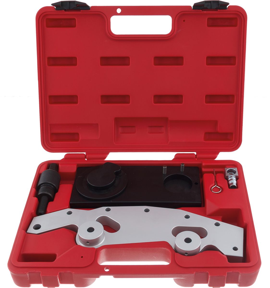 KA-3151K Набор для обслуживания двигателей BMW Набор предназначен для фиксации распределительных валов по установочным меткам. Подходит для двигателей: M52TU, M54, M56 Состав: Регулировочная пластина для установки фаз газораспределения Фиксатор шестерен вторичной цепи Имитатор гидравлического натяжителя первичной цепи Фиксатор натяжителя вторичной цепи Адаптер для сжатого воздуха Необходим для проверки функционирования системы Vanos