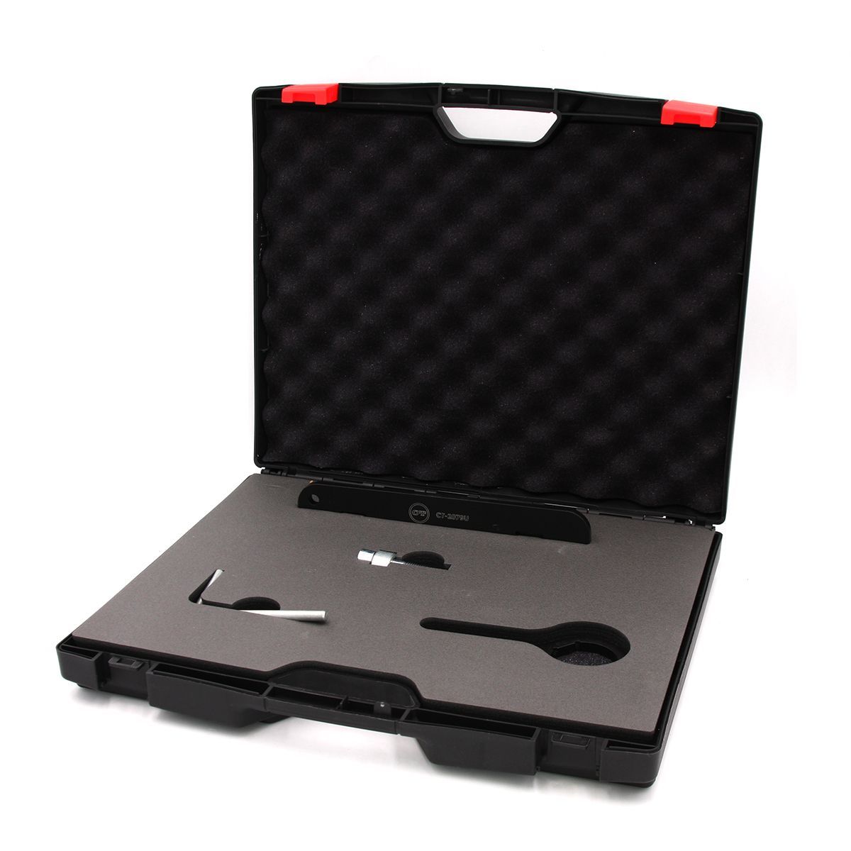 Набор приспособлений для монтажа ГРМ N63 предназначен для установки и проверки фаз ГРМ двигателей BMW модификации N63. Набор комплектуется необходимым инструментом, с помощью которого можно выполнить регулировку и базовую настройку механизма газораспределения. Комплектация - Фиксатор распредвала BMW 11 9 890 (Аналог) - Кронштейн для фиксации коленчатого вала BMW 11 8 570 (Аналог) - Ключ
