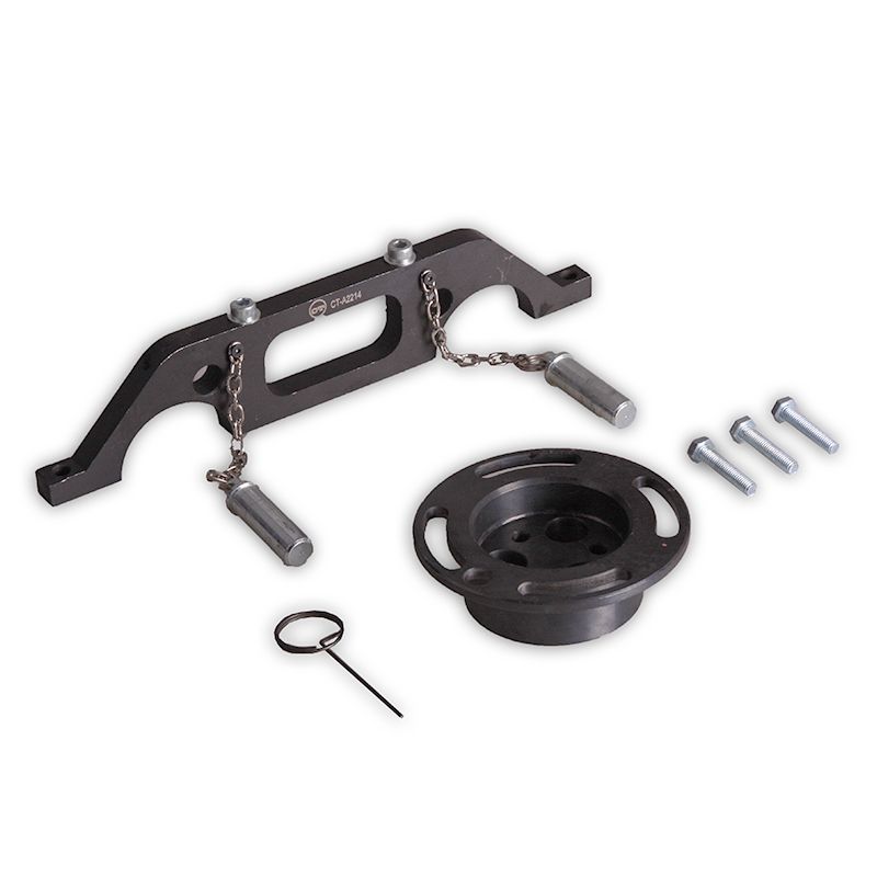 Приспособления на Опель - Назначение инструментов: установка фаз ГРМ - Комплект состоит: шаблон для фиксации колес распредвалов KM-6148, съемник водяного насоса KM-J-43651, фиксатор натяжителя цепи, болты крепления. - Применение: двигателя Z22SE и Z22YH