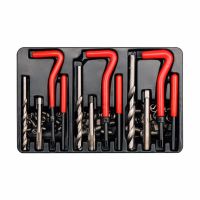 Набор для восстановления резьбы M5x0.8мм, M6x1.0 мм, M8x1.25 мм включает в себя свёрла для рассверливания, метчики для нарезания резьбы, оправки для установки вставок, выколотки для обламывания технологического поводка, резьбовые вставки.