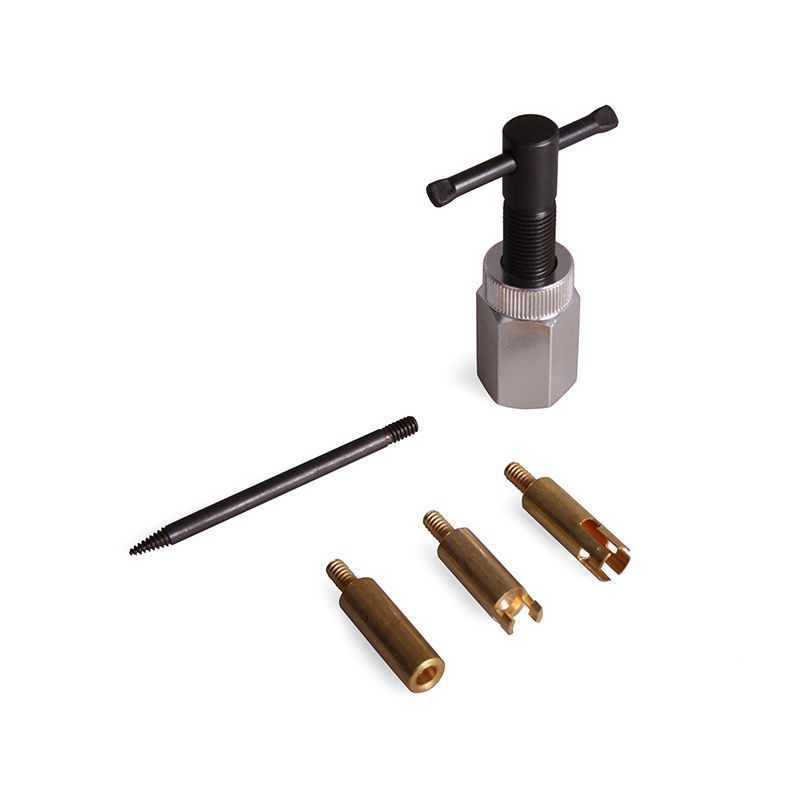 Набор для замены расширительной трубки Состоит из 5 инструментов для снятия и установки расширительной трубки. Поставляется в пластиковом кейсе. Комплектация набора для замены расширительной трубки - Съемник для трубки - Съемник GM - Удлинитель с резьбой - Удлинитель врезной