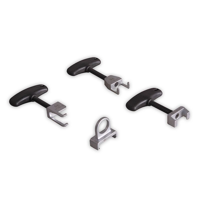 Инструменты для монтажных работ катушек зажигания - Назначение инструментов: используются для демонтажа катушек зажигания, например при замене свечей зажигания, или диагностики этой системы. Применяемость набора монтажных приспособлений для VAG - Применение T10166: VW 8 and 12 cyl. AWA, ASN, BBK - Применение T10094A: VW Polo, Golf 1.4, 1.6i, Caddy 1.4i, Bora 1.4L, 1.6L, Passat, Touran 1.6L, Phaeton, Transporter T4 - Применение T10095A: 5 & 6 cyl. VW Golf, Bora, 4 & 5 cyl. VW Passat, 6cyl. Sharan, Touareg, Phaeton - Применение T40039: VW 8 & 12 cyl. AWA, ASN, BBK Комплектация - Съемник катушек зажигания T10095A - Съемник катушки зажигания T10166 - Съемник катушек зажигания T10094A - Съемник катушек T40039