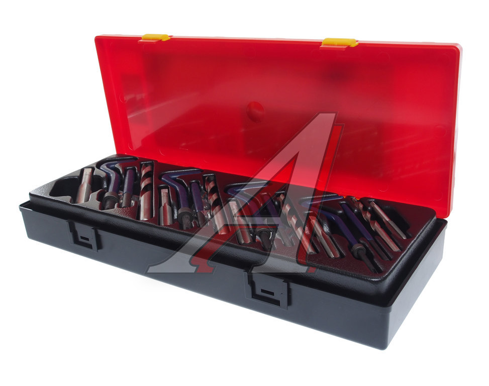 25 шт. - M6x1.0x8 мм 25 шт. - M8x1.25x10.8 мм 25 шт. - M10x1.25x13.5 мм 25 шт. - M10x1.5x13.5 мм 10 шт. - M12x1.25x16.3 мм 4 шт. - Сверло 4 шт. - Инструмент для обламывания хвостовика 5 шт. - Метчик 4 шт. - Установочный инструмент