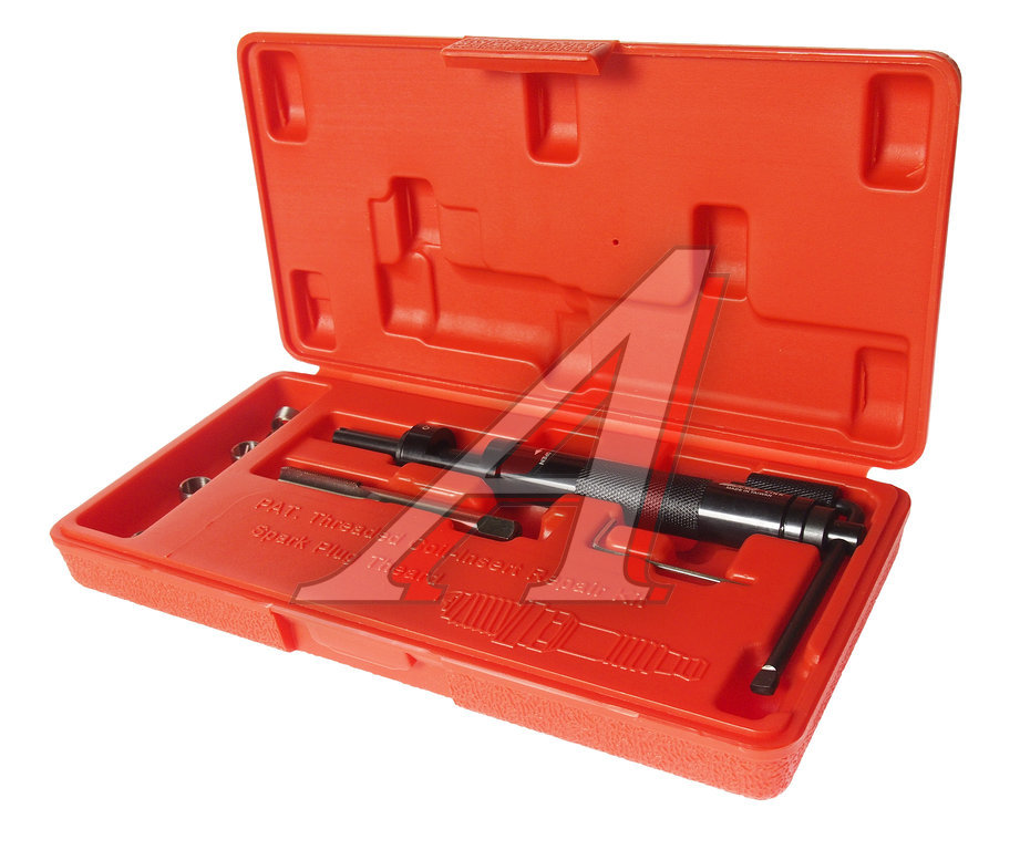 Набор специально предназначен для реконструкции резьбы свечей зажигания. В комплект входит направляющая втулка, специальные метчики и шестигранный ключ. Характеристики вставок: М10х1.0 (3/8”) – 5 шт. Размер: М10х1.0. Габаритные размеры: 240/120/40 мм. (Д/Ш/В) Вес: 420 гр.