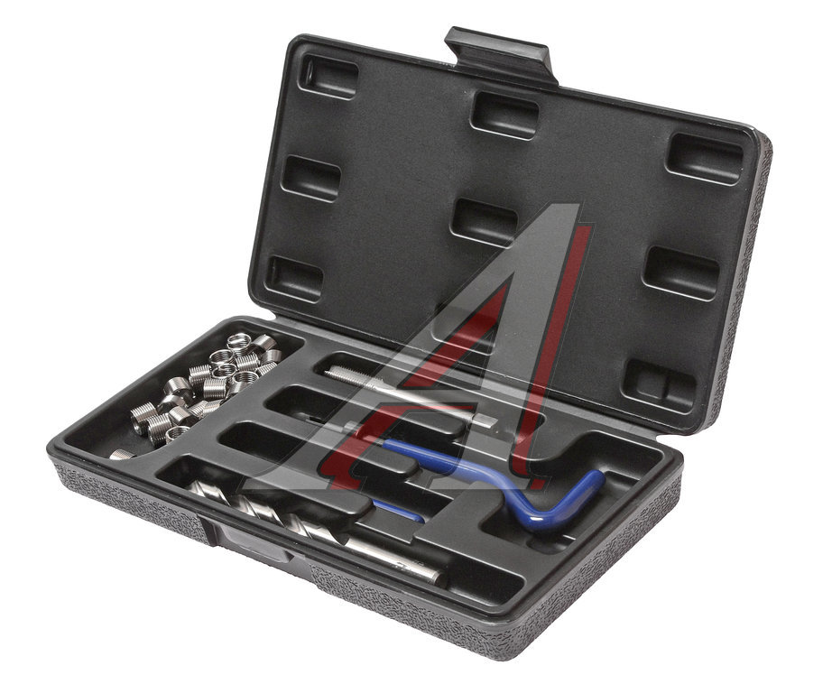 В комплекте 14 предметов В комплект входят: сверло, метчик, установочный инструмент, инструмент для обламывания хвостовика, резьбовые вставки Размеры: М10х1.25 Длина: 13.5 мм. Количество резьбовых вставок: 10 шт. Упаковка: прочный пластиковый кейс. Габаритные размеры: 245/125/40 мм. (Д/Ш/В) Вес: 469 гр.