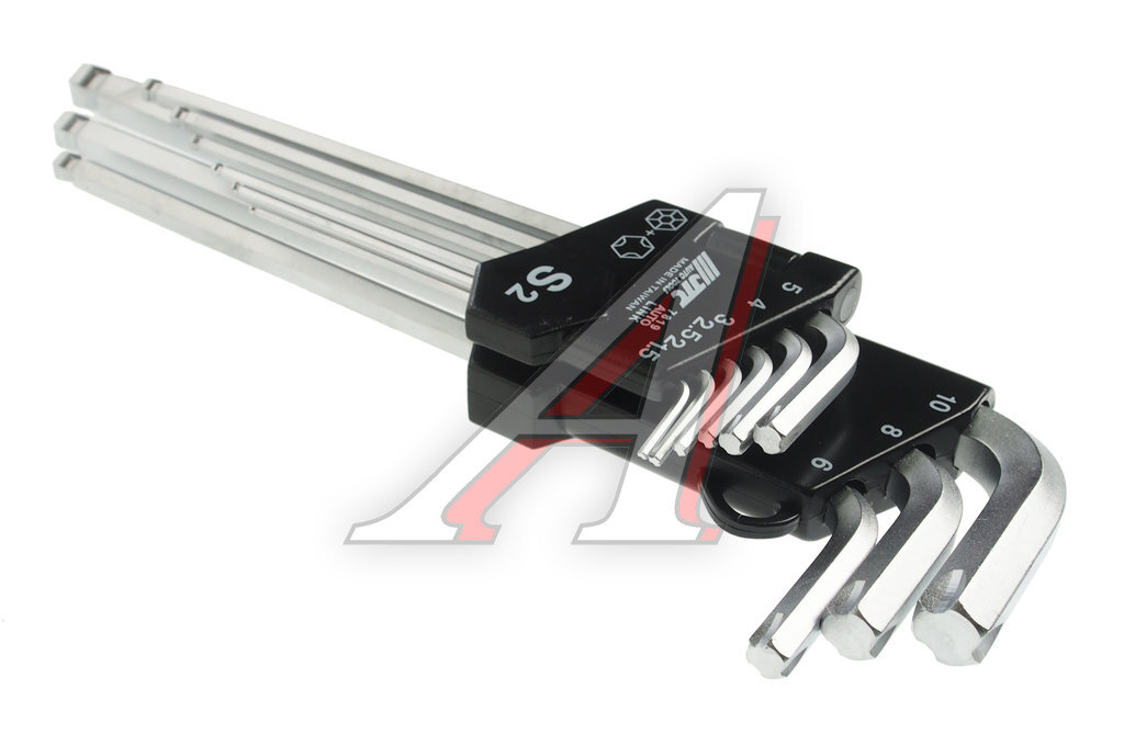 Короткая часть ключа имеет противоскользящую защиту, что способствует извлечению винта. Длинная часть предназначена для работы под косым углом. Длина: удлиненная конструкция. Материал: S2. В комплекте: 1.5, 2, 2.5, 3, 4, 5, 6, 8, 10 мм.