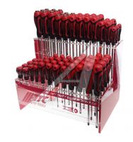 Размеры стенда: длина 400 мм х ширина 385 мм х высота 305 мм. Комплектация: верхняя полка: JTC-7627, 7605, 7606, 7611, 7612, 7613, 7614, 7617, 7618, 7619, 7620, 7623. нижняя полка: JTC-7607, 7608, 7601, 7602, 7603, 7604, 7629, 7630, 7609, 7610, 7615, 7616. Всего: 84 отвертки.