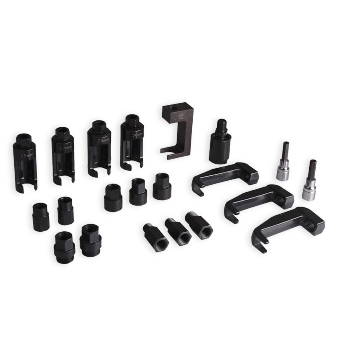Набор съемников инжектора предназначен для демонтажа топливных пьезофорсунок Комплектация - Съемник шпинделя: OT-M14x1.5, ОТ-M16x1.5, ИТ-M16x1.0, ИТ-M17x1.O, ИТ-M20x1.O, ИТ-IM25x1.O, ИТ-M27x1.O, ОТ-M25x0.5 , OT-M25x0.75, ОТ-M27x1 - 10 шт - Карданный шарнир: M18x1.5 - 1 шт - Специальные шестигранные головки - 2 шт - Захваты под: 12 мм, 13,5 мм, 16 мм, 26 мм - 4 шт - Головки 25, 27, 29, 30 - 4 шт - Кейс - 1 шт