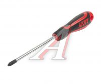 Материал: 8NCM8660. Стержень отвертки стальной. Покрыт сатин-хромом, жало оксидировано. Рукоятка имеет треугольную форму. Изготовлена из двухкомпонентного материала (РР + TPV). Обладает стойкостью к маслам, бензину и другим химическим веществам. Стандарт DW 6.5. Размер: РН2х100.