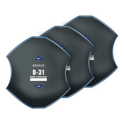 Пластыри D-31 (холодные) 350/6 сл., 5 шт. Размер 350 мм 5 шт. 6 слоев корда. Диагональные пластыри ROSSVIK применяются для ремонта всех типов камерных и бескамерных шин диагональной конструкции карьерной техники и погрузчиков.