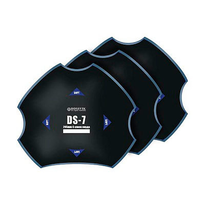 Пластыри DS-7 (холодные) 295/6 сл., 5 шт. Размер 295 мм 5 шт. 6 слоев корда. DS-серия для ремонта в зоне бортового кольца. Новые облегченные пластыри с меньшим числом слоев корда для снижения жесткости места ремонта. Диагональные пластыри ROSSVIK применяются для ремонта всех типов камерных и бескамерных шин диагональной конструкции легковых и грузовых автомобилей. Могут устанавливаться на любом ремонтопригодном участке шины.