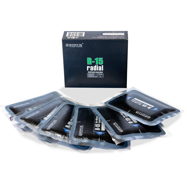 Пластыри R-15 (холодные) 90х105/1 сл., 10 шт. Размер 90х105 мм 10 шт. 1 слой корда Радиальные пластыри ROSSVIK предназначены для ремонта всех типов радиальных бескамерных и камерных шин легковых автомобилей, грузового и пассажирского транспорта, сельскохозяйственной, карьерной и землеройной техники. Они обеспечивают надежный и долговечный ремонт в любой ремонтопригодной зоне шины.