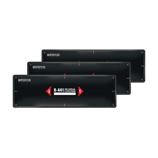 Пластыри R-441 (термо) 140х400/4 сл., 10 шт. Размер 140х400 мм 10 шт. 4 слоя корда R-441 (140х400) имеет промежуточный размер между пластырями R-44 (130х340) и R-46 (180х440). Применение этого пластыря позволяет снизить себестоимость ремонта определенных размеров шин. Термопластыри с текстильным кордом для ремонта радиальных шин ("горячая" вулканизация). Термопластыри ROSSVIK применяются в условиях повышенных нагрузок при эксплуатации шины. Специальный химический слой после прогрева приобретает особую прочность. Температура прогрева 140-150 °С под давлением не менее 3 Атм. Для установки термопластырей применяют специальный термоклей.