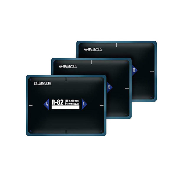 Пластыри R-82 (холодные) 185х240/3 сл., 10 шт. Размер 185х240 мм 10 шт. 3 слоя корда Радиальные пластыри ROSSVIK предназначены для ремонта всех типов радиальных бескамерных и камерных шин легковых автомобилей, грузового и пассажирского транспорта, сельскохозяйственной, карьерной и землеройной техники. Они обеспечивают надежный и долговечный ремонт в любой ремонтопригодной зоне шины.