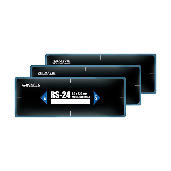 Пластыри RS-24 (холодные) 80х220, 10 шт. Размер 80х220 мм, 10 шт. Пластыри с текстильным кордом для ремонта радиальных шин("холодная вулканизация") Пластыри ROSSVIK вулканизируются "горячим" и "холодным" способами. Для установки химического пластыря "на горячую" применяется клей-активатор.При перегреве пластыря во время эксплуатации его прочные характеристики не меняются. При установке пластырей "холодным" способом, для достижения лучших результатов используется пневмомолоток.