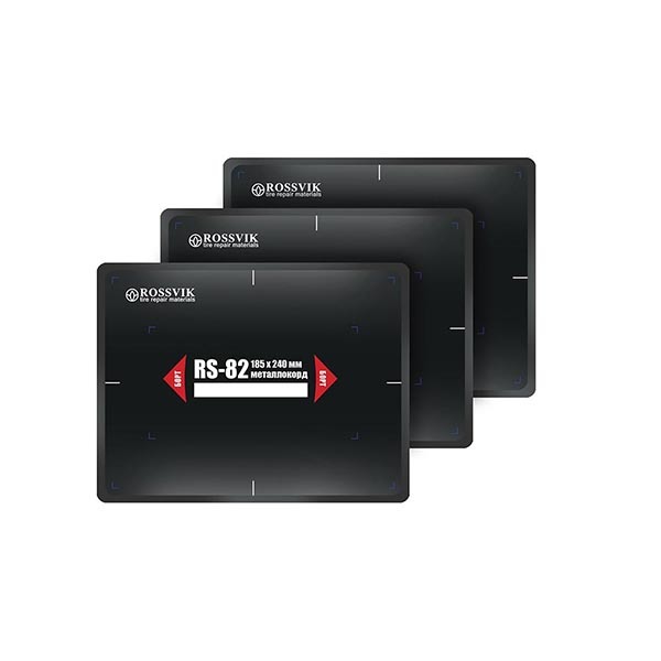 Пластыри RS-82 (термо) 185х240, 10 шт. Термопластыри с текстильным кордом для ремонта радиальных шин ("горячая" вулканизация). • Термопластыри ROSSVIK применяются в условиях повышенных нагрузок при эксплуатации шины. • Специальный химический слой после прогрева приобретает особую прочность. Температура прогрева 140-150 °С под давлением не менее 3 Атм. • Для установки термопластырей применяют специальный термоклей.