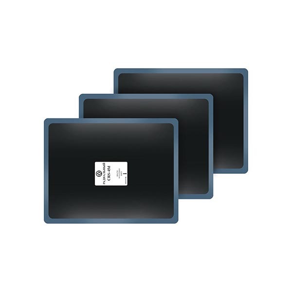 Пластыри СRS-45d (холодные) 180х230, 10 шт. Комбинированные пластыри серии "Combi" для уменьшения вздутия шин ЦМК после ремонта. Пластыри металлокордовые - вид материалов для профессионального ремонта грузовых шин с цельнометаллокордовым каркасом (all steel). Слои металлического корда обеспечивают пластырям более высокую надежность и прочность. Для того чтобы уменьшить напряжение, возникающее на концах жесткого металлокордового пластыря после установки, пластыри ROSSVIK имеют дополнительный внутренний подкладочный текстильный слой, который помогает равномерно распределить напряжение по всей площади пластыря. Индекс на пластырях CRS: d - ремонт пробоев на беговой дорожке.