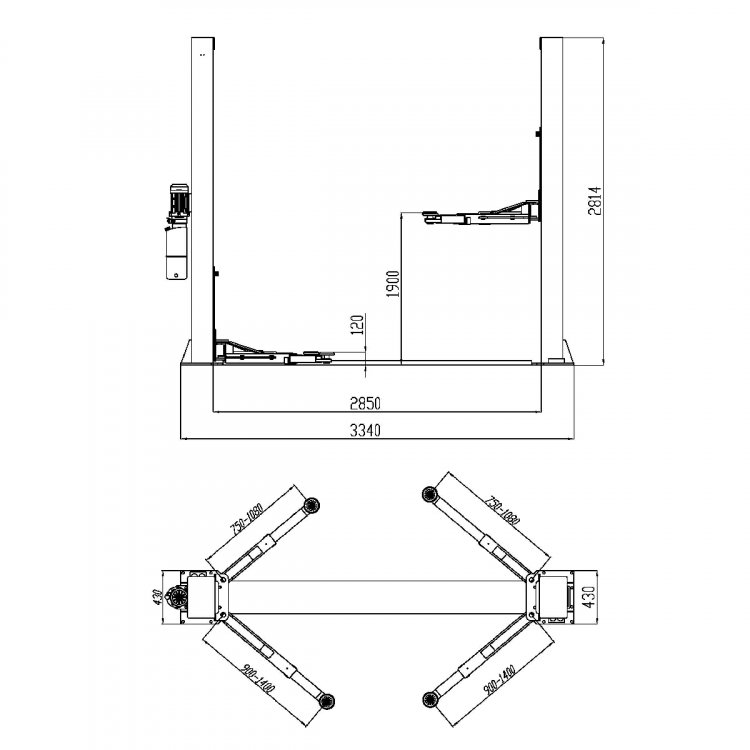 Каретки снабжены нейлоновыми ползунами, обеспечивающими плавное перемещение внутри стоек. Простая и, в тоже время, надежная система механических стопоров со снятием с двух сторон обеспечивает безопасное удержание автомобиля в поднятом состоянии на протяжении всего времени ремонта. Габаритная высота подъемника составляет 2814 мм и позволяет устанавливать его в помещениях с высотой потолка от 3 метров и выше.