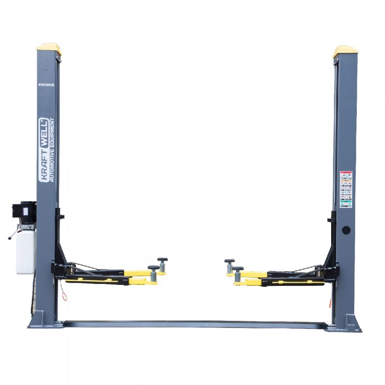 Двухстоечный электрогидравлический подъемник с нижней синхронизацией KRAFTWELL KRW4DLM грузоподъемностью 4000 кг предназначен для подъема легковых автомобилей, внедорожников и легкого коммерческого транспорта с короткой колесной базой.