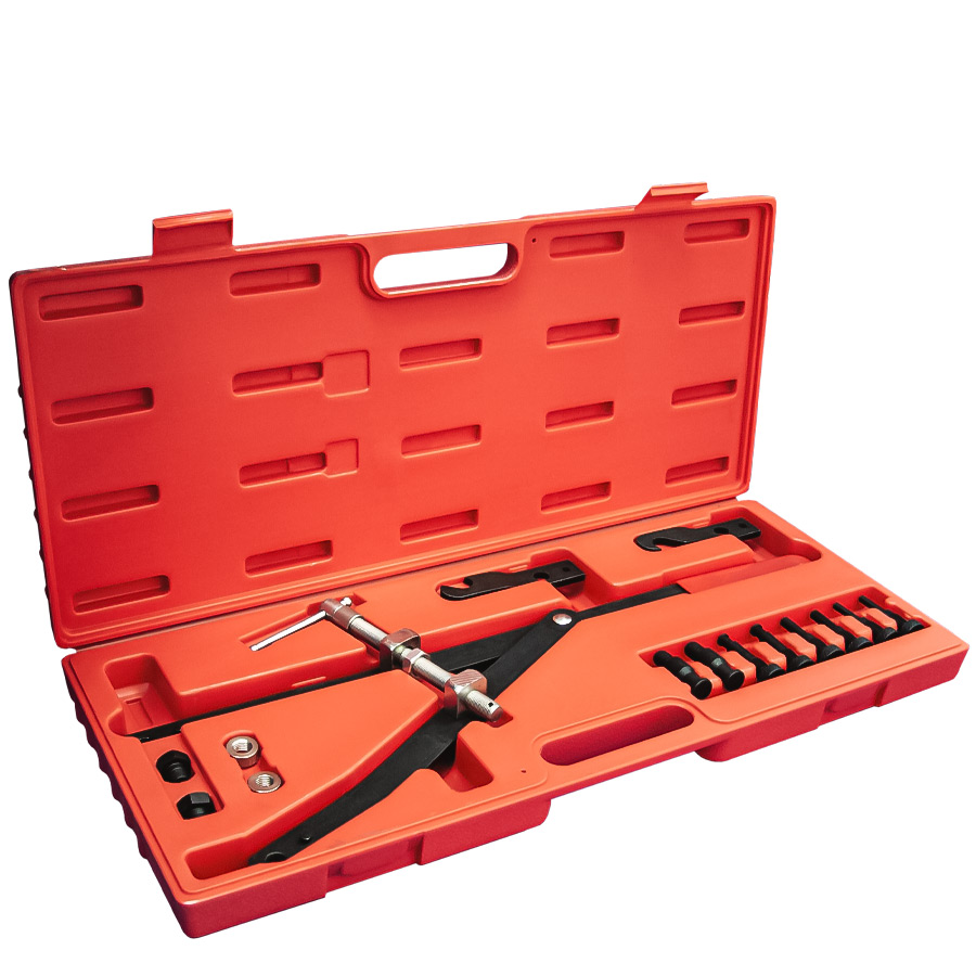 Применяется для снятия муфты вентилятора, удержания шкивов различной конфигурации. Комплект адаптеров обеспечивает совместимость с большинством автомобилей. Для более точной подгонки и надежной фиксации предусмотрен винтовой регулятор. Диапазон регулировки от 40 до 220 мм. Комплектация: Адаптеры Size available: ?6m/m – ?10m/m, ?8m/m – ?11m/m, ?10m/m – ?12m/m, ?11m/m – ?16m/m