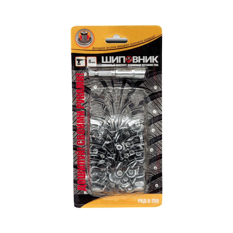 Ремонтный комплект дошиповки РКД-8-150 Набор предназначен для автовладельцев, которые желают самостоятельно установить ремонтные шипы. Насадка устанавливается в шуруповерт или в электродрель Состав: Шип ремонтный 8мм - 150шт Насадка для установки шипов - 1шт