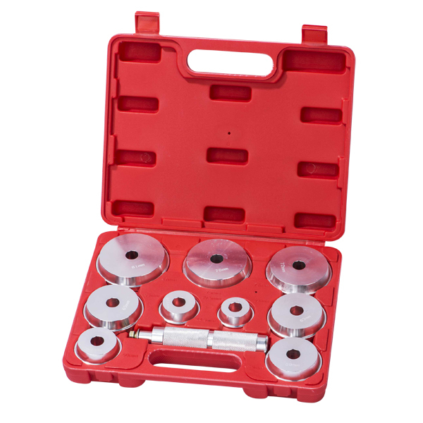 ST023 Набор для установки подшипников и сальников, 10 предметов служит для легкого, быстрого и аккуратного монтажа ступичных подшипников и сальников. Сальники устанавливаются при помощи обратной стороны оправок. Комплект изделий удобно упакован в закрывающийся кейс с рукояткой для возможности переноски.