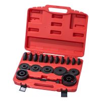ST025 Съемник ступичных подшипников, 23 предмета состоит из изделий, выполненных из высокопрочного материала, устойчивого к различным механическим воздействиям, а также к влиянию технических жидкостей и коррозии. Применяется исключительно профессиональными автомеханиками во время ремонта и обслуживания как легкового, так и грузового транспорта.