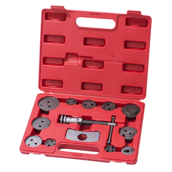 ST063 Набор инструментов для сведения тормозных цилиндров, 13 предметов Данное приспособление предназначено для выжимания тормозных цилиндров, что значительно упрощает установку тормозных колодок. Подходит для большинства автомобилей, в том числе: Mercedes, BMW, Volkswagen, GM, Audi, Ford, Honda, Subaru, Mazda, Nissan, Mitsubishi, Toyota, Land Rover.