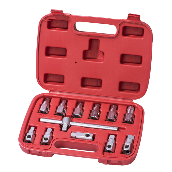 ST094 Набор головок для маслосливных пробок, 12 предметов изготовлены из прочной стали и устойчивы к внешним воздействиям. Используются при работах с автомобилем. Небольшие габариты позволяют использовать изделие в условиях ограниченного пространства. Поставляются в кейсе.