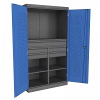 Шкаф инструментальный серии «PROFFI» предназначен для хранения оснастки, приспособлений и инструмента на рабочих местах в мастерских, цехах и других производственных зонах. Шкаф изготовлен из листовой стали и обеспечивает надежное запирание дверей ригельной системой. Шкаф данной модели может комплектоваться либо полками PROFFI(1) и ящиками PROFFI(1) – по всей ширине шкафа, при этом максимальное количество полок и ящиков по высоте - 13 штук. При установке перегородки, шкаф делится на две части и может комплектоваться полками PROFFI(2) и ящиками PROFFI(2), при этом максимальное количество полок и ящиков по высоте - 13 штук в два ряда. Нагрузка на ящики и планшеты PROFFI составляет не более 20 кг (ящики укомплектованы пластиковой ручкой). Нагрузка на полку – не более 100 кг. Суммарная нагрузка на шкаф не более 400 кг. Шкаф оснащен замком «Евролок». Окраска элементов корпуса осуществляется порошковой полимерной краской: RAL 7035 (светло-серый),а дверцы RAL 5005 (синий) – складская программа, RAL 3000 (красный) – под заказ. Все шкафы отгружаются со склада в разобранном виде. Инструкцию по сборке вы можете скачать с нашего сайта.