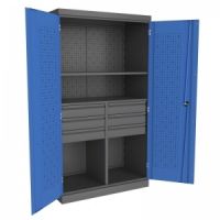 Шкаф инструментальный серии «PROFFI» предназначен для хранения оснастки, приспособлений и инструмента на рабочих местах в мастерских, цехах и других производственных зонах. Шкаф изготовлен из листовой стали и обеспечивает надежное запирание дверей ригельной системой. Шкаф данной модели может комплектоваться либо полками PROFFI(1) и ящиками PROFFI(1) – по всей ширине шкафа, при этом максимальное количество полок и ящиков по высоте - 13 штук. При установке перегородки, шкаф делится на две части и может комплектоваться полками PROFFI(2) и ящиками PROFFI(2), при этом максимальное количество полок и ящиков по высоте - 13 штук в два ряда. Нагрузка на ящики и планшеты PROFFI составляет не более 20 кг (ящики укомплектованы пластиковой ручкой). Нагрузка на полку – не более 100 кг. Суммарная нагрузка на шкаф не более 400 кг. Шкаф оснащен замком «Евролок». Окраска элементов корпуса осуществляется порошковой полимерной краской: RAL 7035 (светло-серый),а дверцы RAL 5005 (синий) – складская программа, RAL 3000 (красный) – под заказ. Все шкафы отгружаются со склада в разобранном виде. Инструкцию по сборке вы можете скачать с нашего сайта.