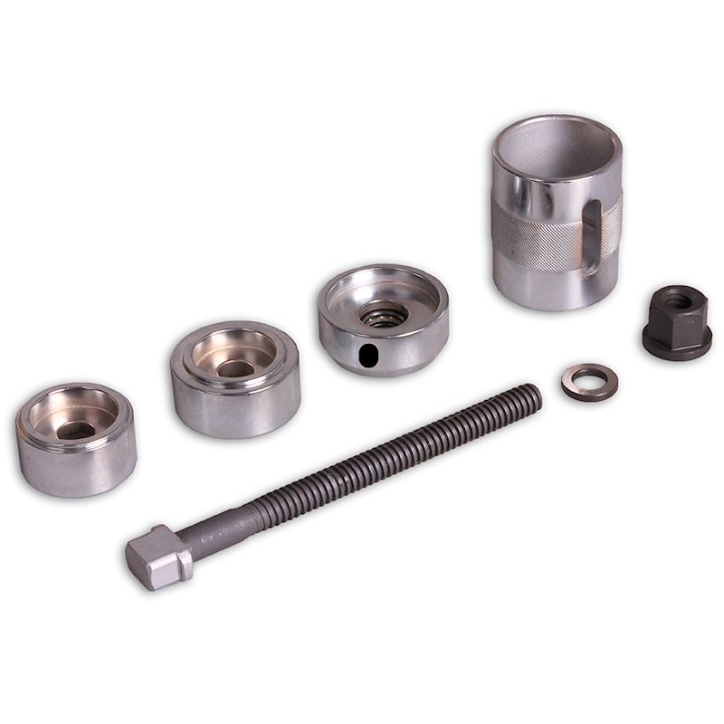 Съемник для замены сайлентблоков крепления редуктора в заднем подрамнике Mercedes Benz ML W163 Комплектация - Оправки для выпрессовки - 3 шт - Съемник - 1 шт - Силовой винт - 1 шт - Гайка - 1 шт - Болт - 1 шт